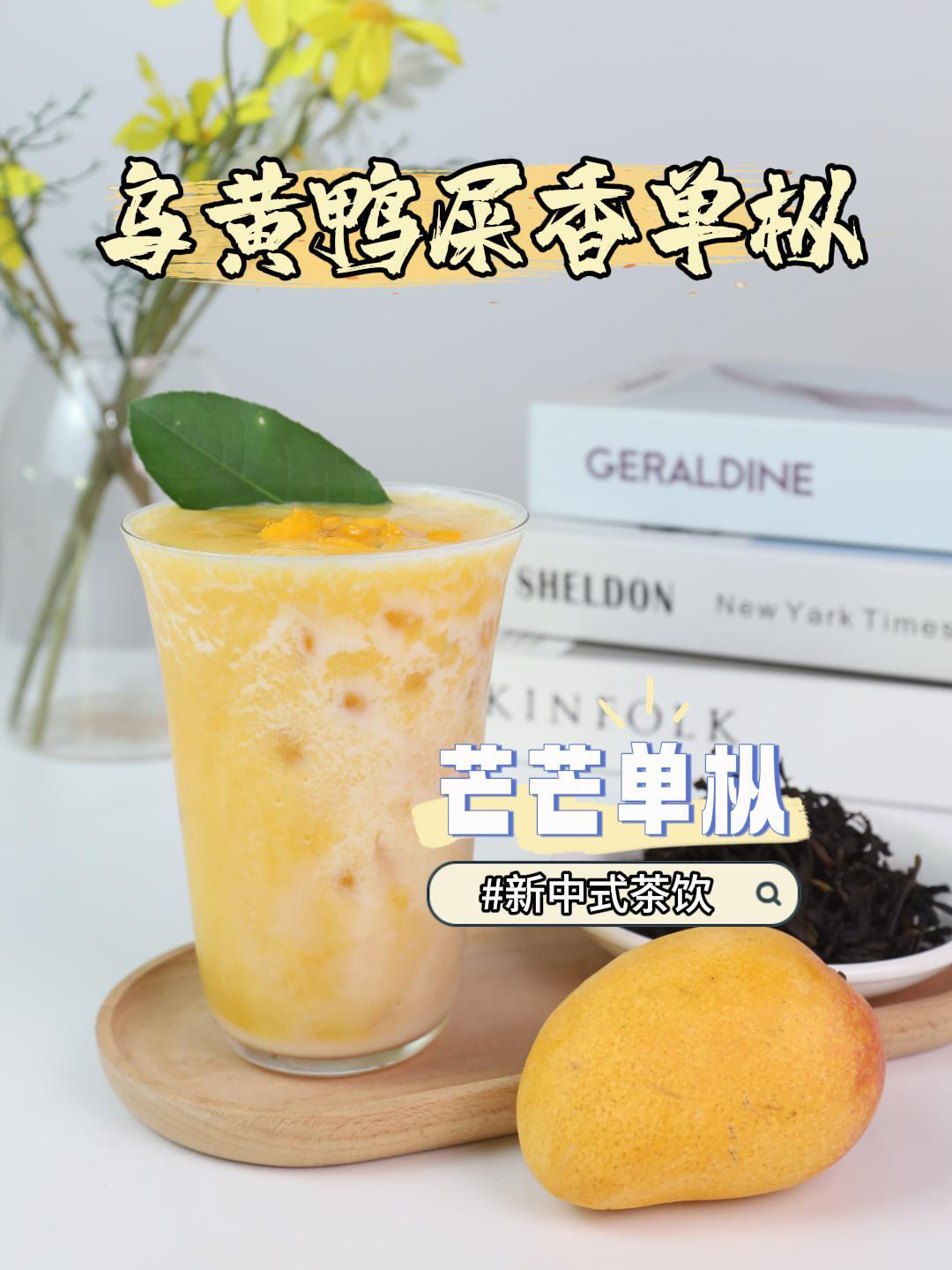 Step 4: Place 30 grams of tapioca pearls and 10 grams of milk into the glass, pour the blended drink over them, and finally garnish with mango chunks and lemon balm leaves. Enjoy your refreshing Mango Dan Cong tea beverage.